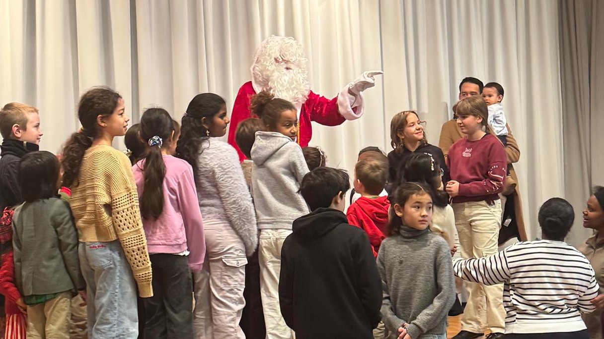 Santa Claus interacts with the children in the ESCM.