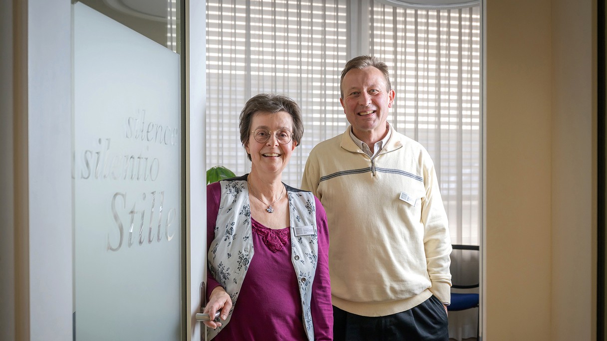 Nebst den beiden Seelsorgenden kümmern sich 22 Freiwillige um den reibungslosen Betrieb von «Raum + Stille». Beat Graf, selbständiger Malermeister, berichtet von der Begegnung mit einer Familie, deren Mutter eine Krebsdiagnose bekommen habe. «Sie wünschten ein gemeinsames Gebet. Es war sehr eindrücklich, diesen Moment in ihrem Leben mit ihnen zu teilen.» Die pensionierte Christina Hofmann möchte nach einem erfüllten Leben etwas zurückgeben: «Ich bin hier einfach präsent und kann die Sorgen der Menschen aufnehmen.» Der 55-jährige Geschäftsmann Oliver Moeri möchte ganz bewusst «als Jünger Jesu» da sein. Barbara Auf der Maur ist bereits seit sieben Jahren als Freiwillige engagiert. «Es wäre doch sonst langweilig», meint die quirlige Frau. Sie liebt die Begegnungen mit verschiedensten Menschen.